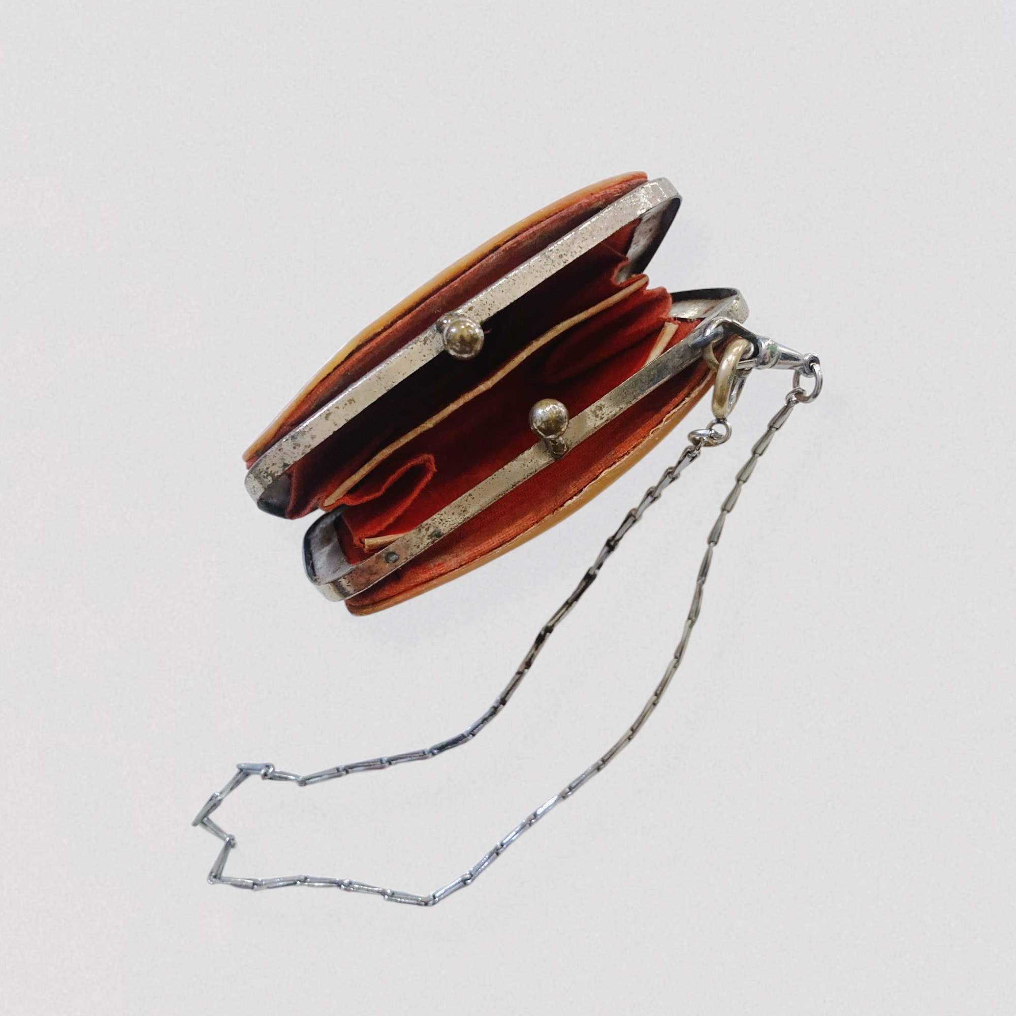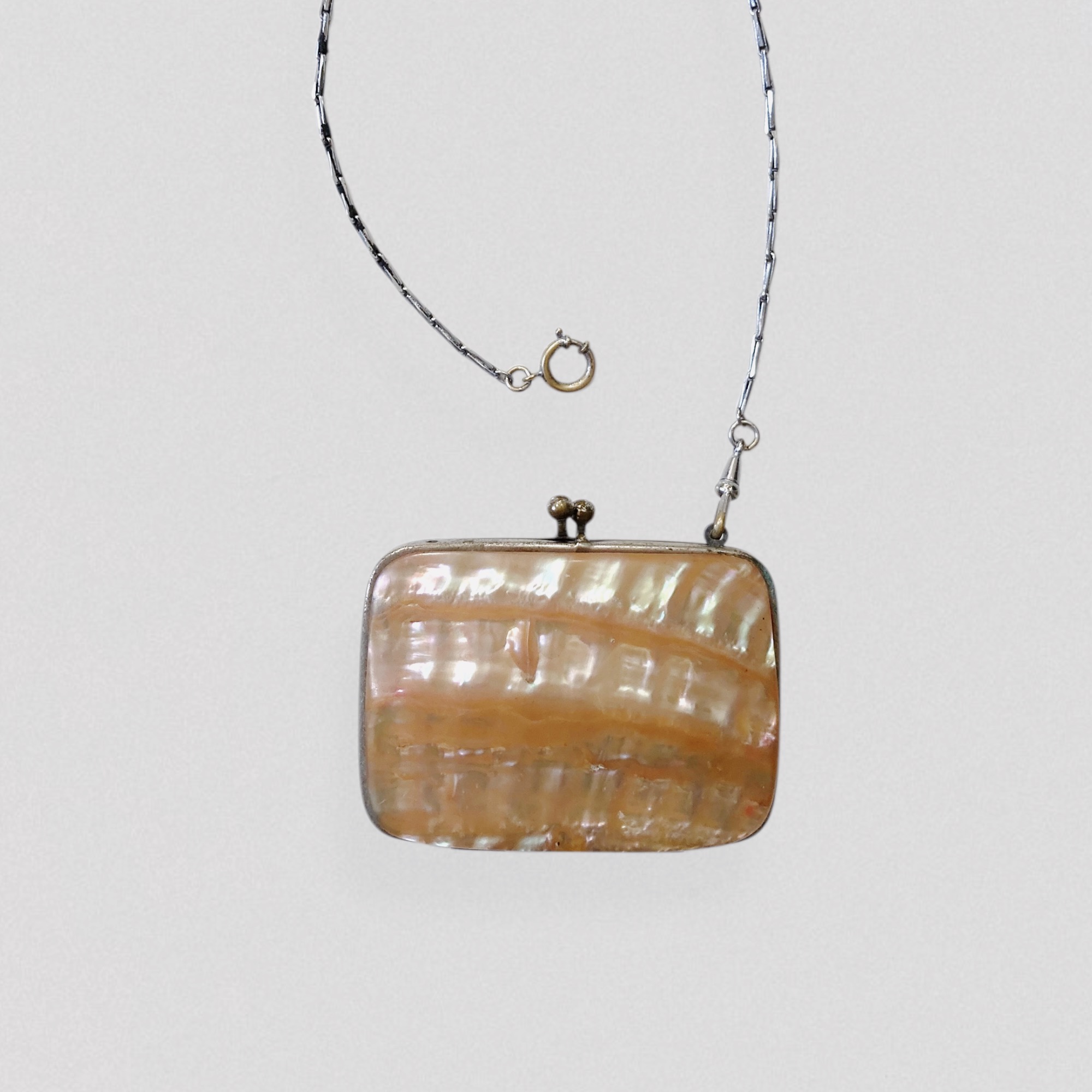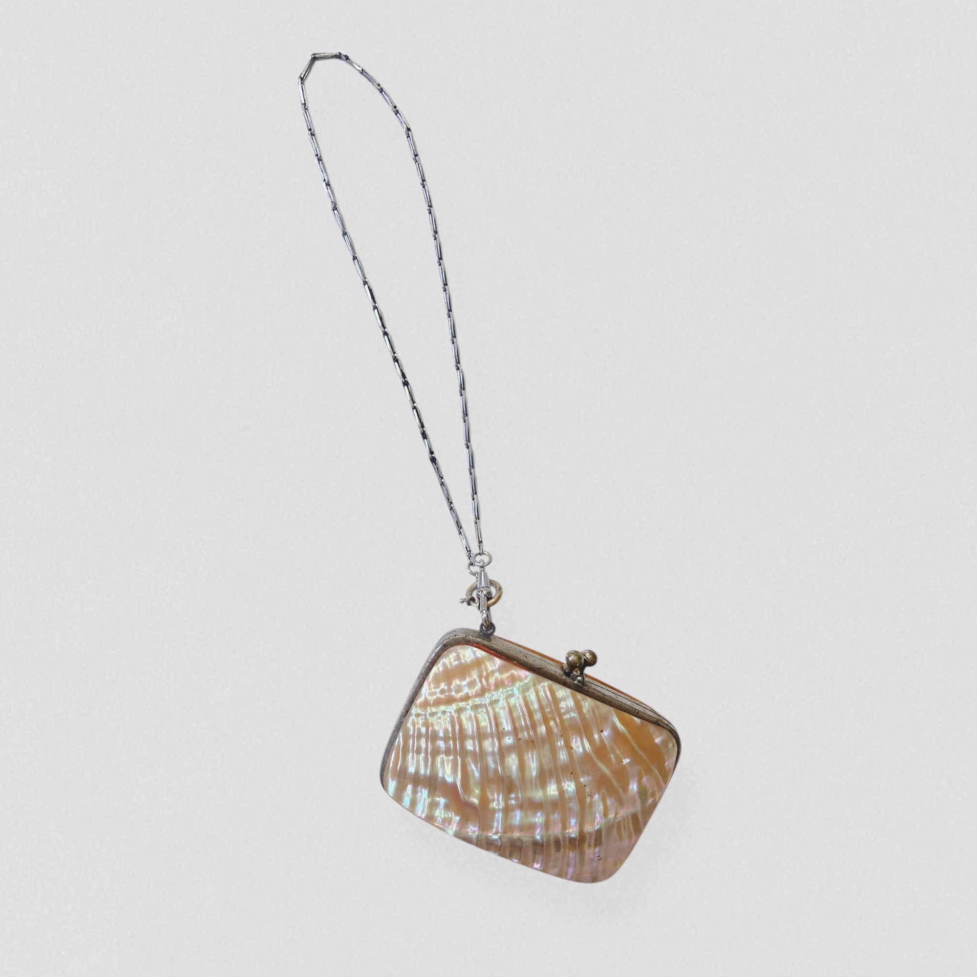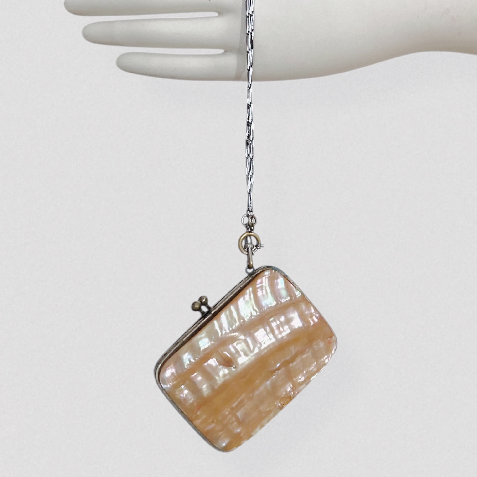 Antique XIXe century mother-of-pearl coin purse with chain
